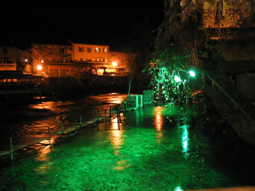Auf der Suche nach dem nächsten Übernachtungsplatz steuerten wir mit unserer Landjacht den Ort Fontaine de Vaucluse an. Hier ist laut der Campercontact-Liste ein großer Womo-Stellplatz mit Ver- und Entsorgung und dies ist auch so. Ca 50 Mobile finden hier problemlos am Ufer-Wäldchen Platz. Den Besuch der mächtigen Quellen hier im Ort sollte man auf keinen Fall verpassen wenn man hier in der Gegend ist. Auch ein Aufenthalt für einige Tage kann der Erholung förderlich sein.