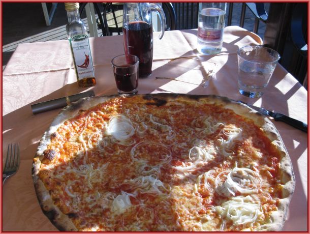 fand eine kleine Pizzeria mit Terrasse und tollem Ausblick.
