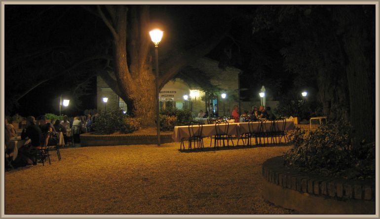 Ich blieb noch eine weitere Nacht. Abends besichtigte ich die Pizzeria-Konkurrenz im kleinen Park unter einer mächtigen Zeder.
