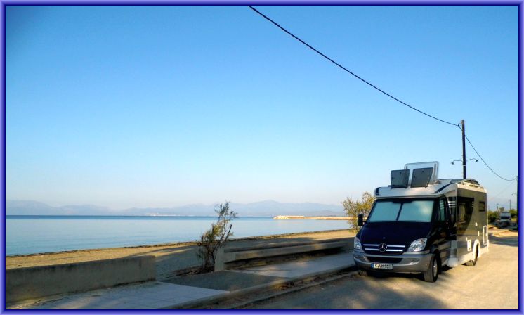 "Kommst du mit Schwimmen?" Eigentlich keine ungewöhliche Frage. Aber wenn meine Holde auf etwas in Griechenland besteht, dann ist es das morgendliche Bad vor dem Frühstück. Und ich muss gestehen, das nach anfänglichem Zörgern es eigentlich kaum etwas Schöneres gibt um den Tag zu beginnen. Das Wasser fühlt sich anfänglich noch etwas frisch an. Aber nach kurzer Zeit hat man sich an die leichte Abkühlung gewöhnt und möchte gar nicht mehr raus gehen. Herrlich! Nur die Vorstellung von gebackenen Brötchen und duftendem Kaffee treibt zum Womo zurück.