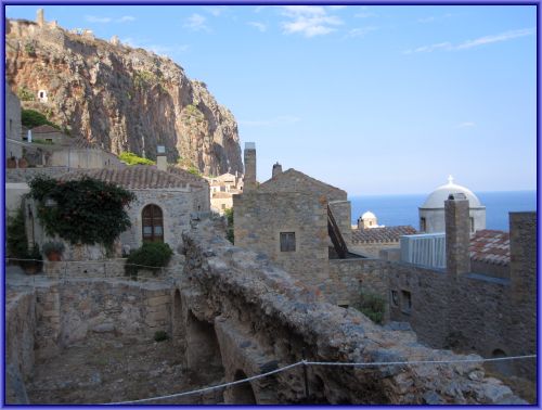 Monemvasia hat eine wechselvolle Geschichte hinter sich. Wie man sich unschwer vorstellen kann hat der Felsen aufgrund seiner Struktur und seiner Lage in vergangenen Zeiten in erster Linie strategische Bedeutung gehabt. Die auf dem Berg gelegene Zitadelle galt lange Zeit als uneinnehmbar.
