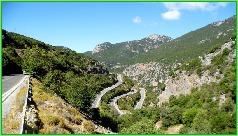 Direkt hinter Kalamata beginnt der Anstieg. Nun wird man von hier für die nächsten 50 km bis Mystras, unserem nächsten Ziel, kaum noch ein gerades Straßenstück finden das länger als 100 Meter ist. Trotzdem ist die Straße gut ausgebaut und dementsprechend zu fahren.