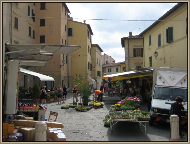 Kurzer Zwischenstopp in Castelnuovo Berardenga. Es war Markttag.