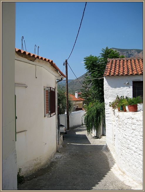 zu dem etwas höher gelegenen Ort Poulithra. Auch hier gibt es eine Reihe