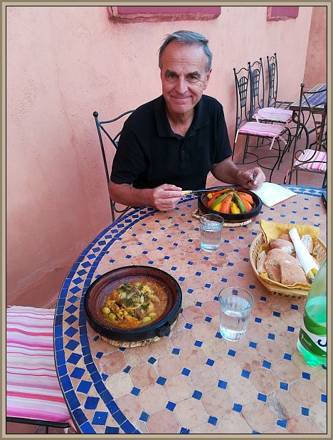 Wir fanden ein kleines Resaurant mit Terasse und bestellten, wenig überraschend, Tajine.