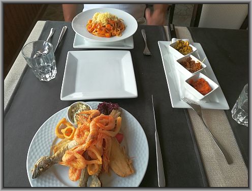 und Fleischgerichten. Man sitzt sehr schön dort und wir haben abends